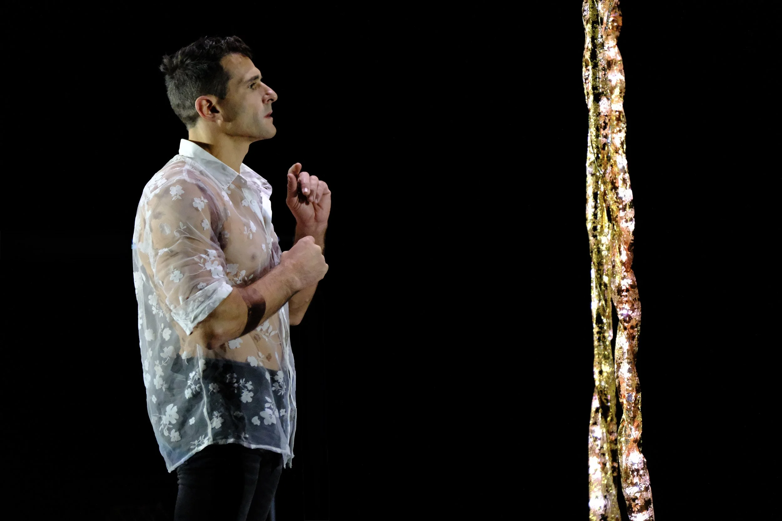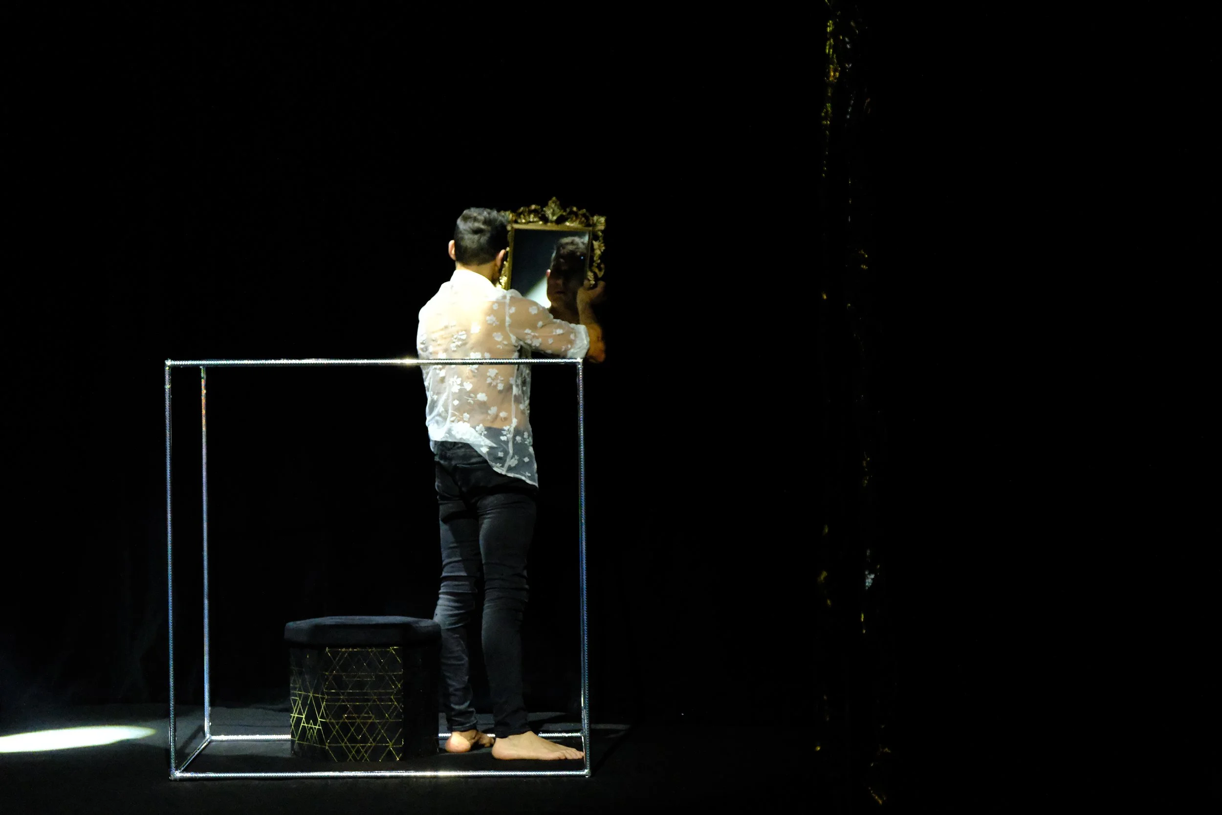 Le miroir, tour à tour barrière et portail, finit par les réunir. Ensemble, ils se découvrent comme deux flammes jumelles, guidées par une force invisible. Dans un numéro aérien final, ils s'élèvent, leurs âmes enfin unies. La scène se clôt sur une étreinte douce, marquant la fin de leur voyage intérieur et l'acceptation de l'autre comme miroir de soi.